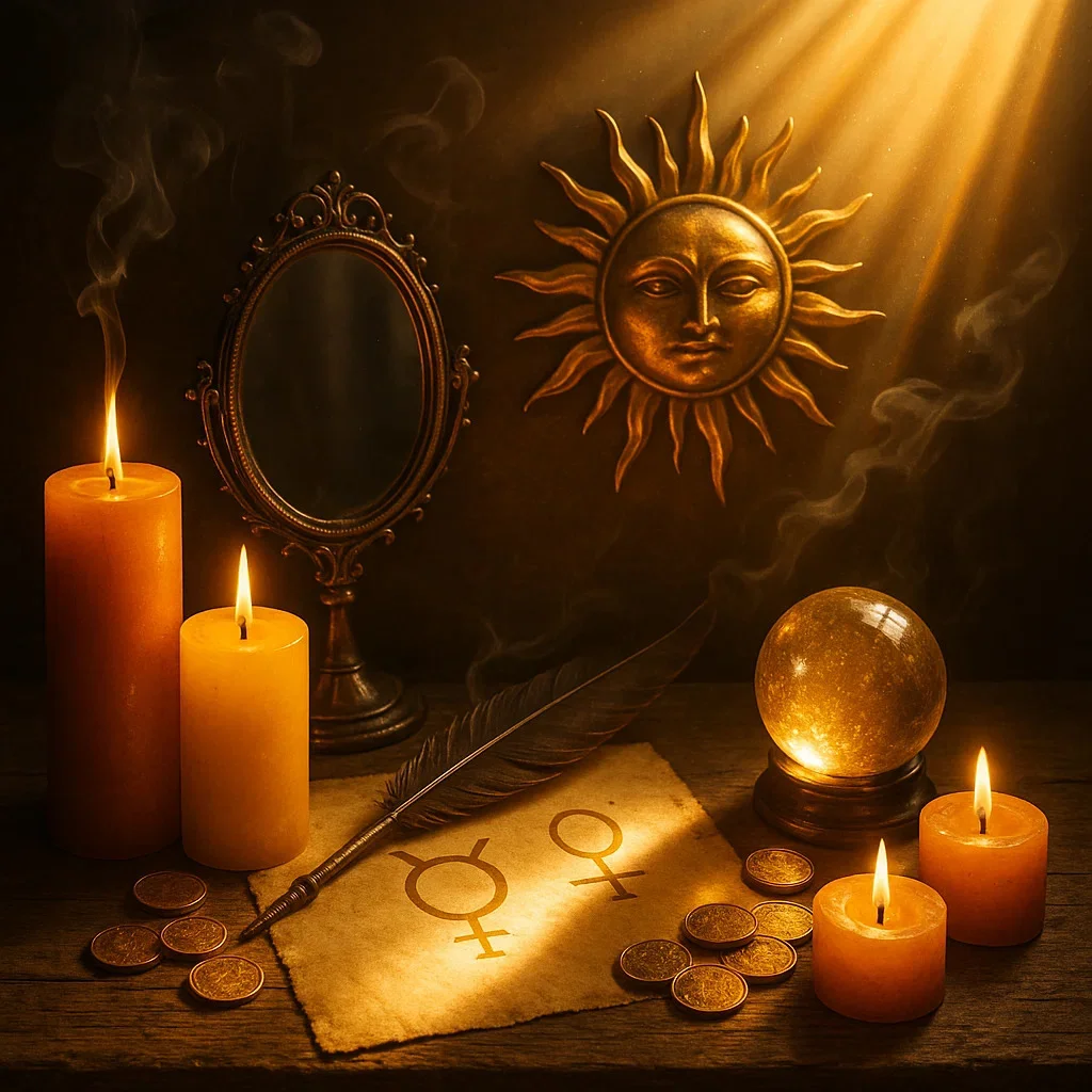 If your brand feels invisible despite effort, this ceremony activates astral channels of recognition. It calls planetary intelligences of Mercury and the Sun to amplify your presence, name, and authority. The spell dissolves shadows of obscurity, commanding influence and credibility. Ideal for launches, public figures, or professionals seeking dominant positioning.